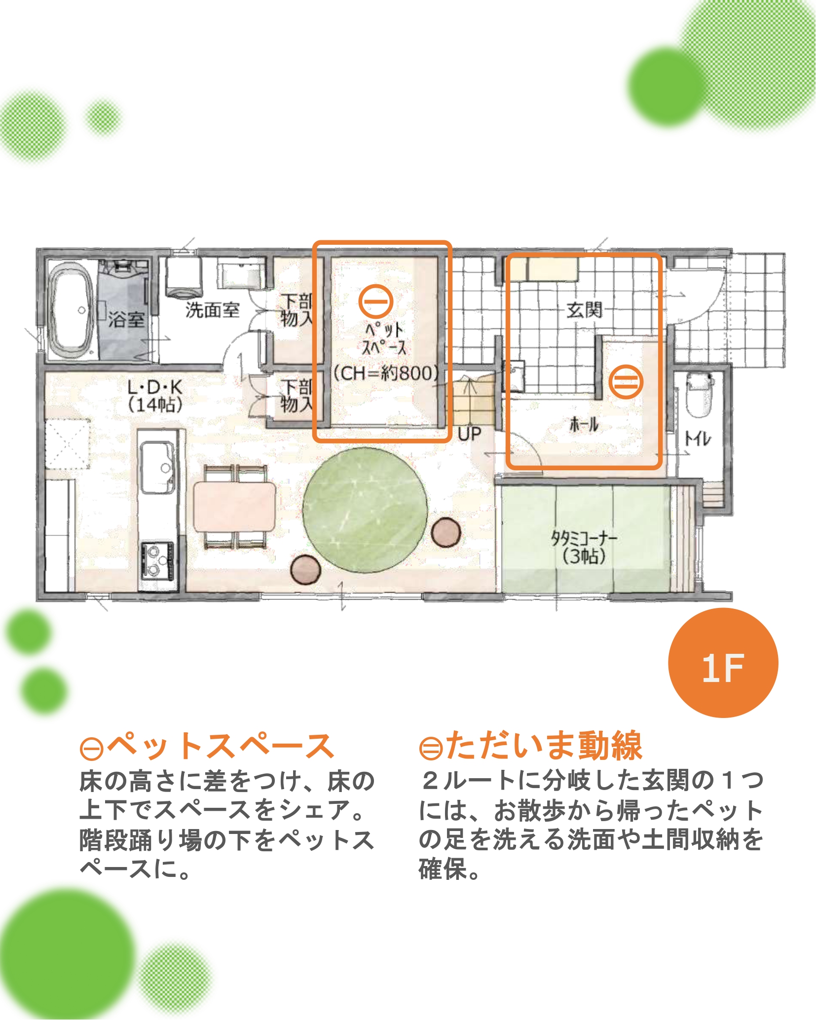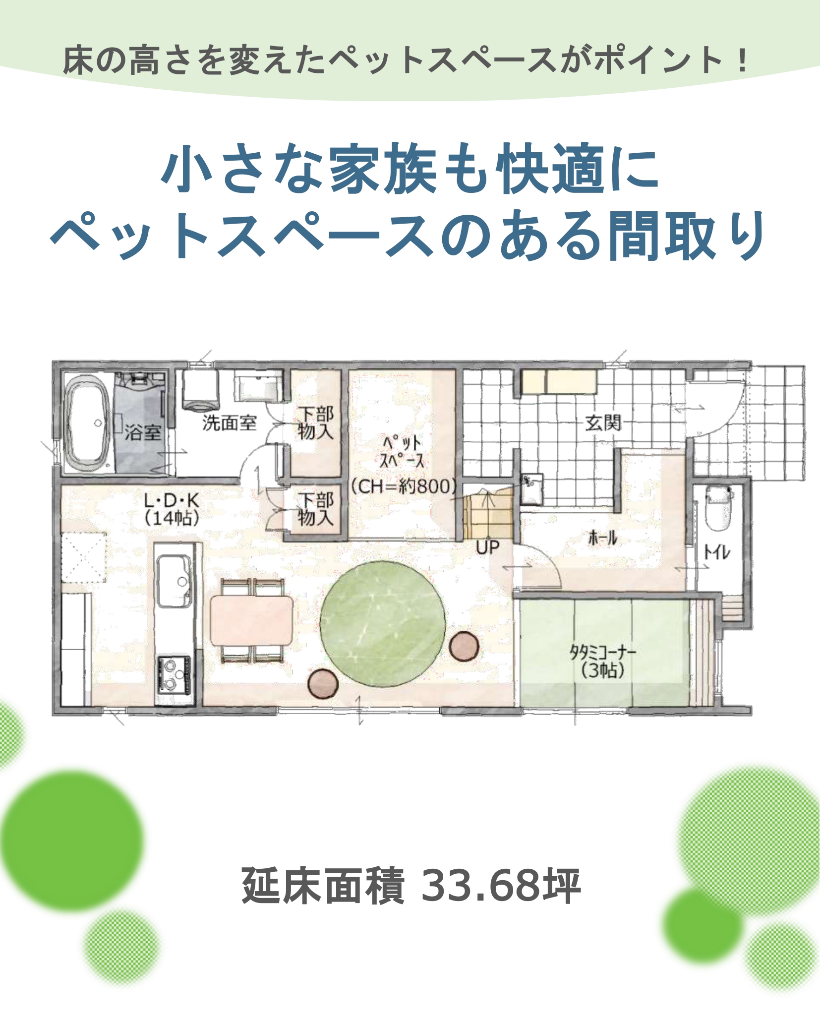 今回の間取りは、床の高さを変えたペットスペースがポイント!