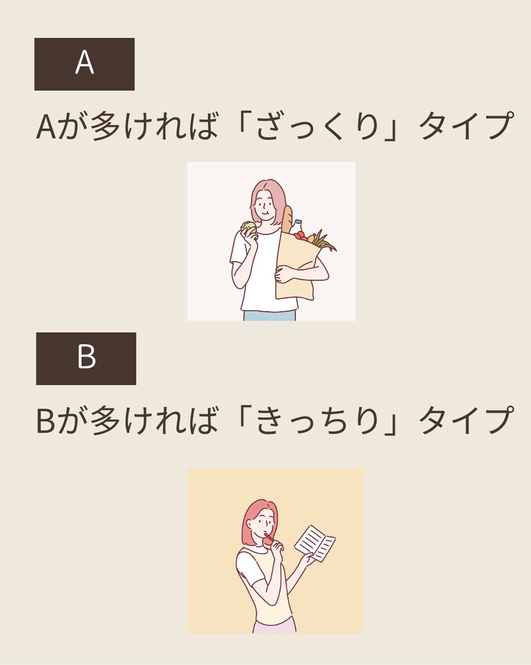 Aが多ければ「ざっくり」タイプ、