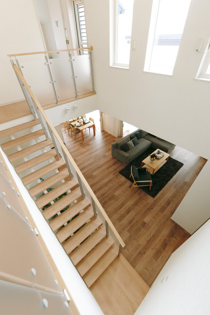 踏み台と骨組みだけで出来ており、階段を設置しても視界が開けるため、実際の面積よりも家が広く見える上に開放感が生まれます。