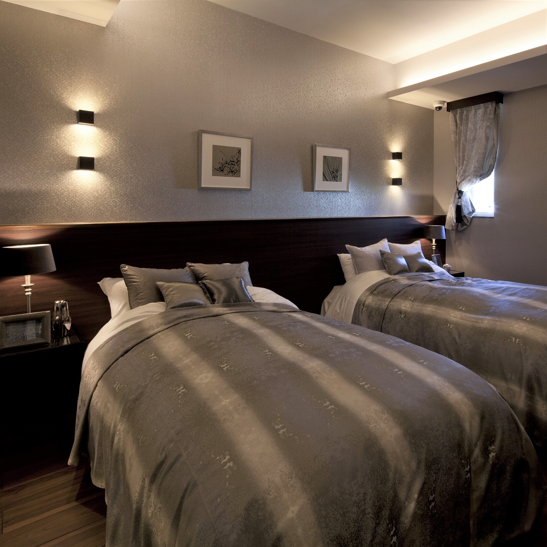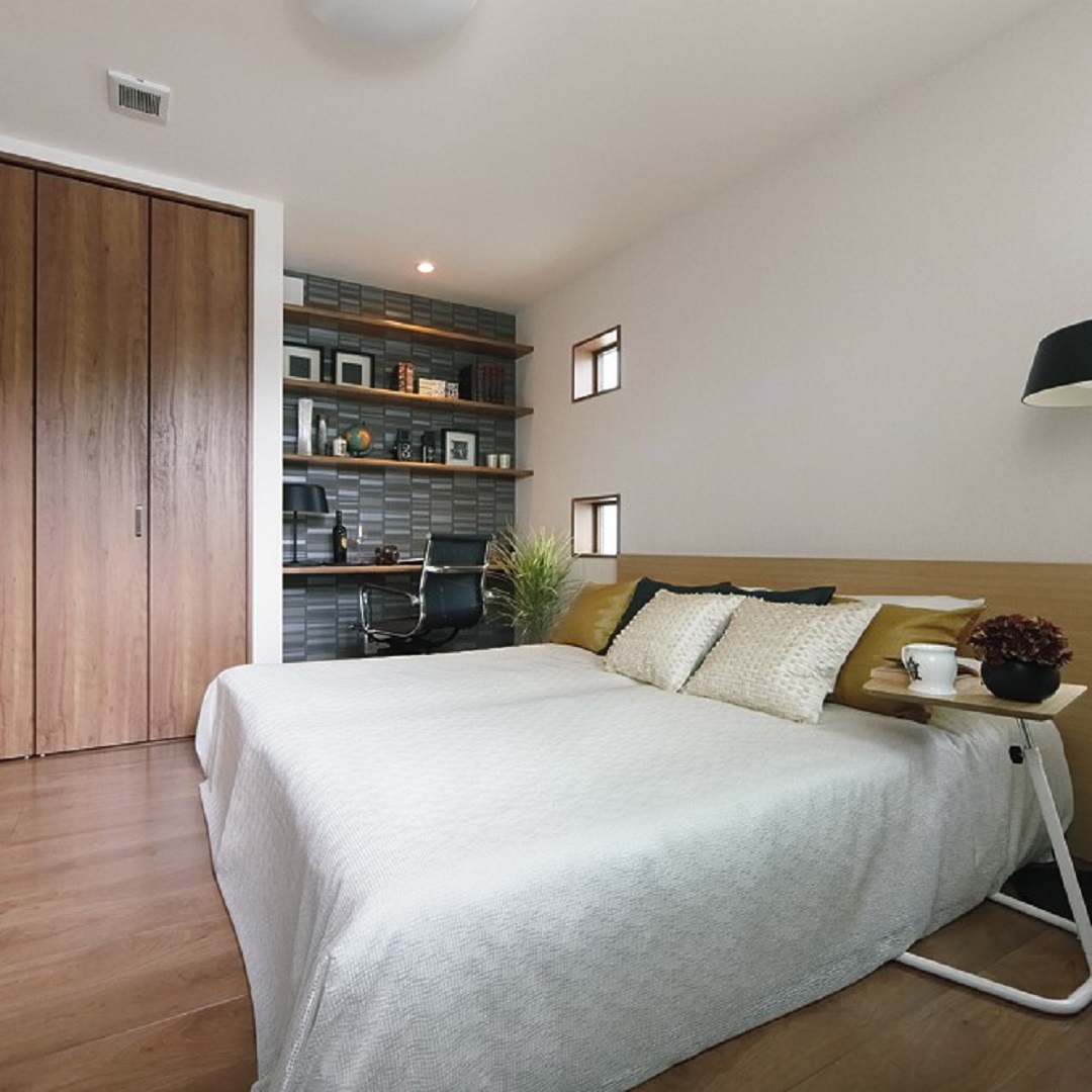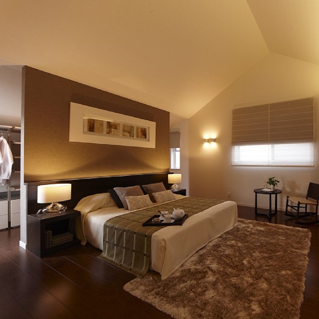 落ち着いた雰囲気の寝室や、