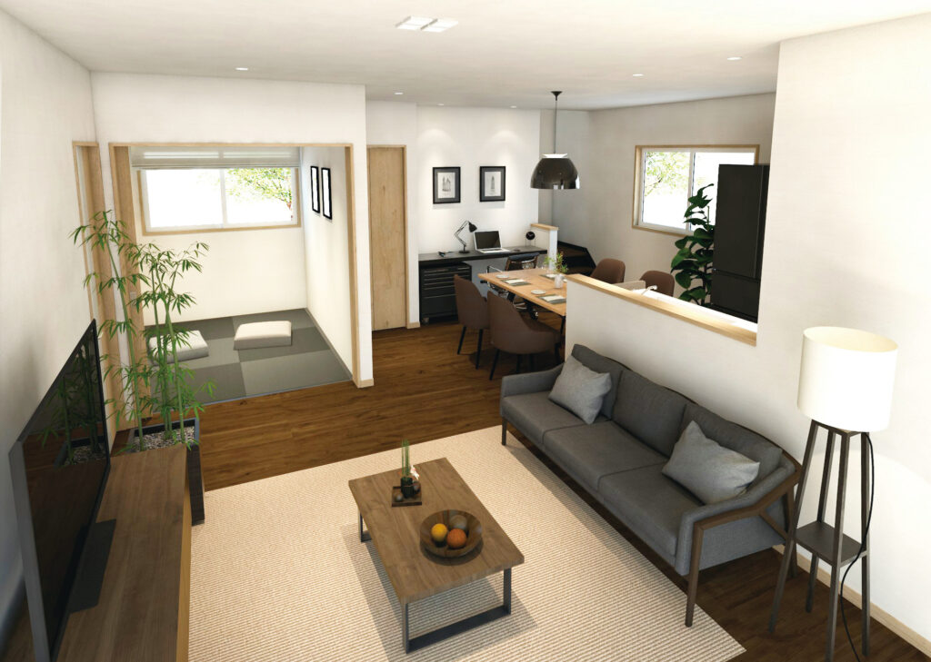 リビング、ダイニング、和室がやわらかくつながる開放的な間取りは、家族が自然と集まれる特別な舞台です。