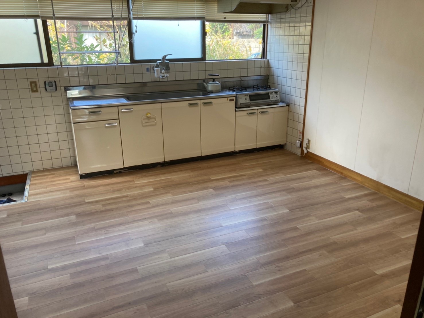 光市で台所の床の張り替え工事をしました