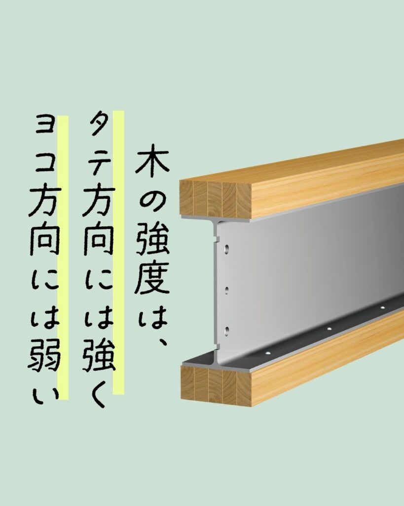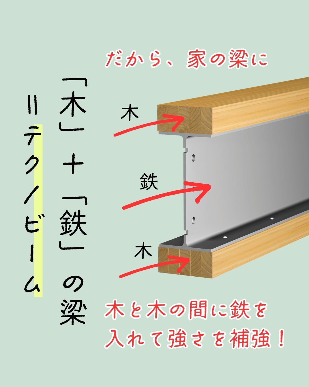 木に鉄を組み合わせた強い梁「テクノビーム」を使うので、