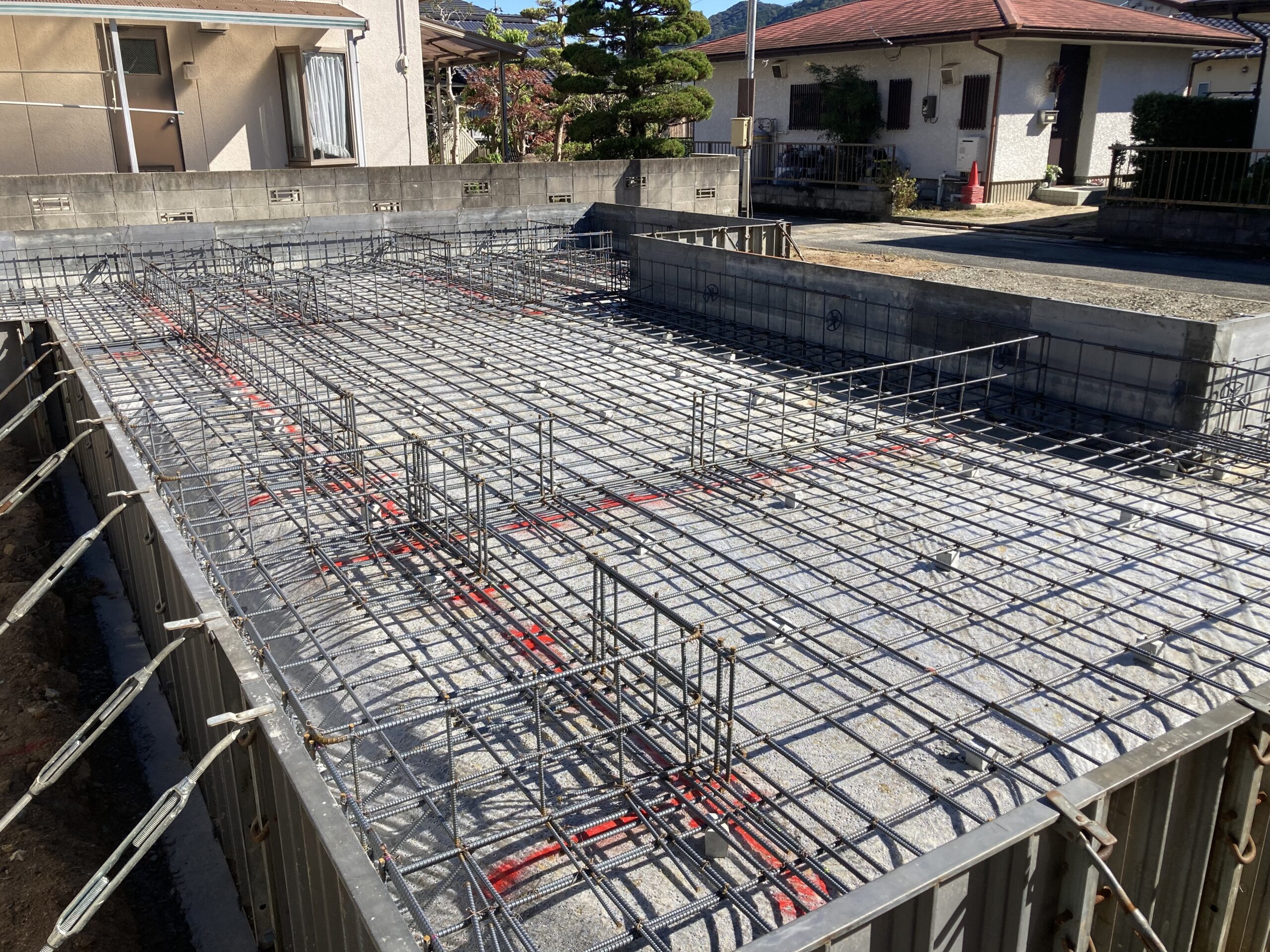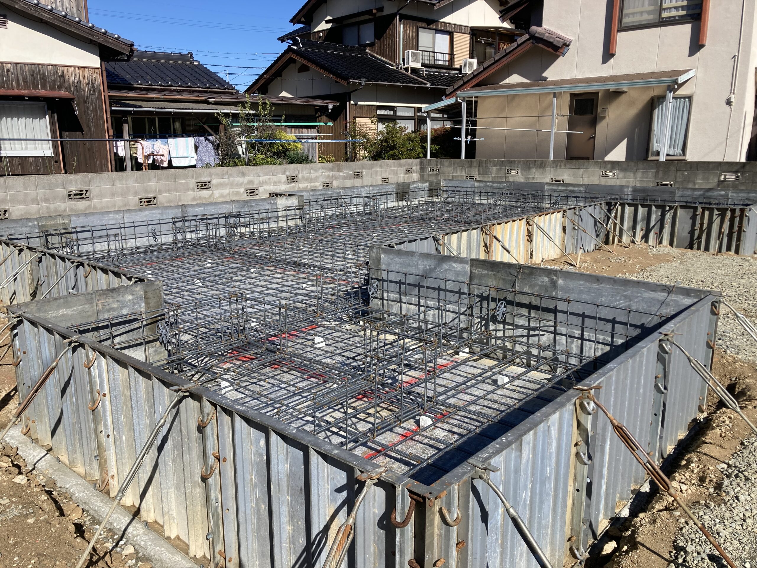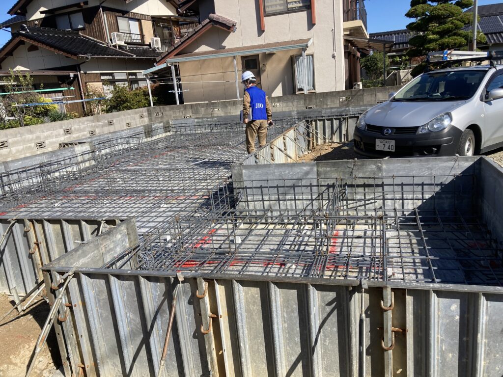 2022.10.25 | ブログ 基礎配筋検査 山口市で現在の建物を解体して新しく2世帯で住まれるご家族のお家です 基礎の配筋検査をしています 図面通りの鉄筋の配置、大きさを確認して貰いました 急に寒くなりましたので協力業者さん 風邪を引かない様にして頑張って下さいね