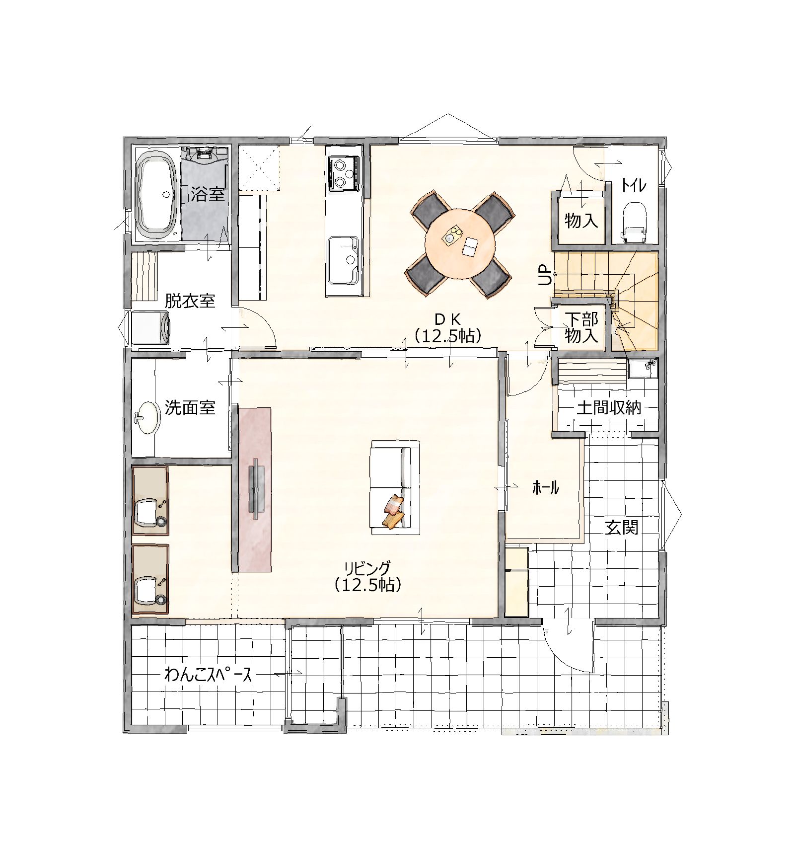 ☑ 壁や柱が少なく、ワンちゃんが自由に走り回れる空間