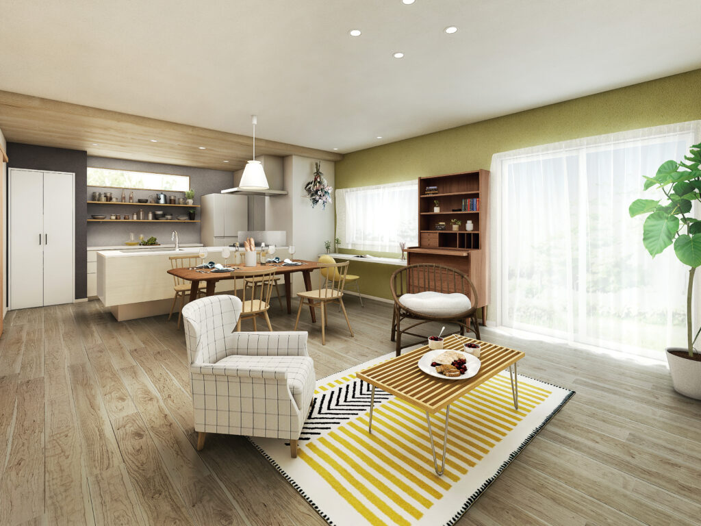 木のぬくもりに包まれたリビングダイニングは、家族と過ごす時間も、自分の時間も大切にできる場所。