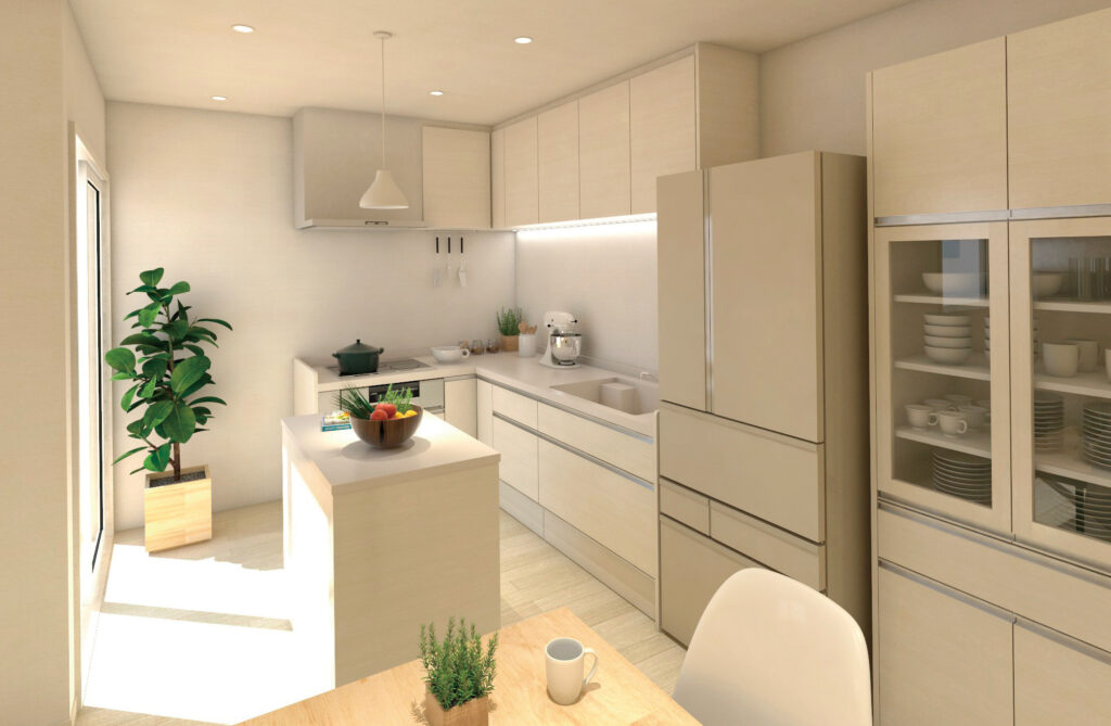 家族が自然と集まるゆとりあるキッチン、