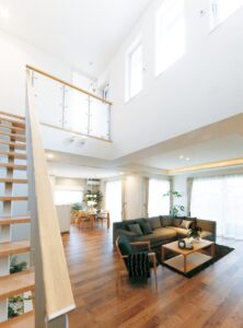 今回ご紹介するのは 「日差しがこぼれる吹き抜けリビング」の事例! 南向きの窓からだけでなく、吹き抜けを通して 2階からも日差しが降り注ぐ気持ちの良いリビングは とにかく明るくて開放感抜群! リビング横の階段や手すり下にも […]