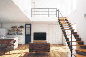 テクノストラクチャーだからできるワイドな吹き抜けリビング。 外観の見た目からは想像できない、明るくて気持ちのよい空間です。 天井高さ 5.2m の吹き抜けと、在来木造住宅では難しい柱のない奥行 4.5m の […]