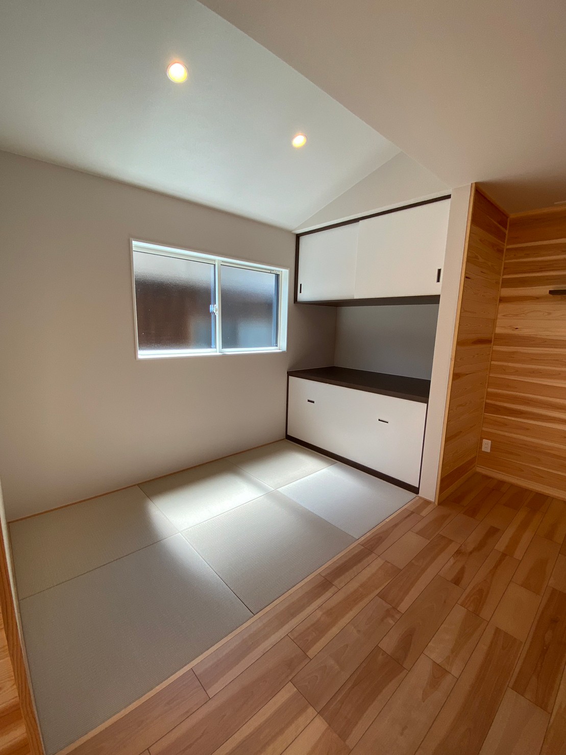 畳コーナーは勾配天井にして開放感を感じられます。