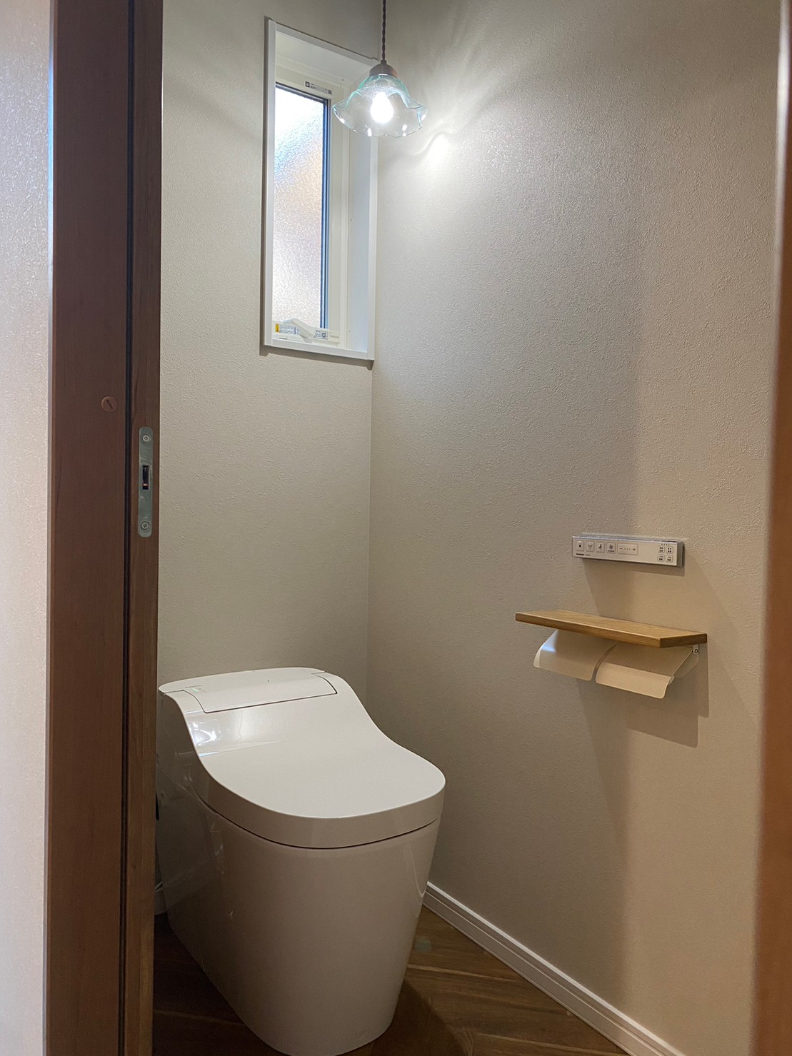 おしゃれなライトとアクセントクロスが可愛いトイレ。