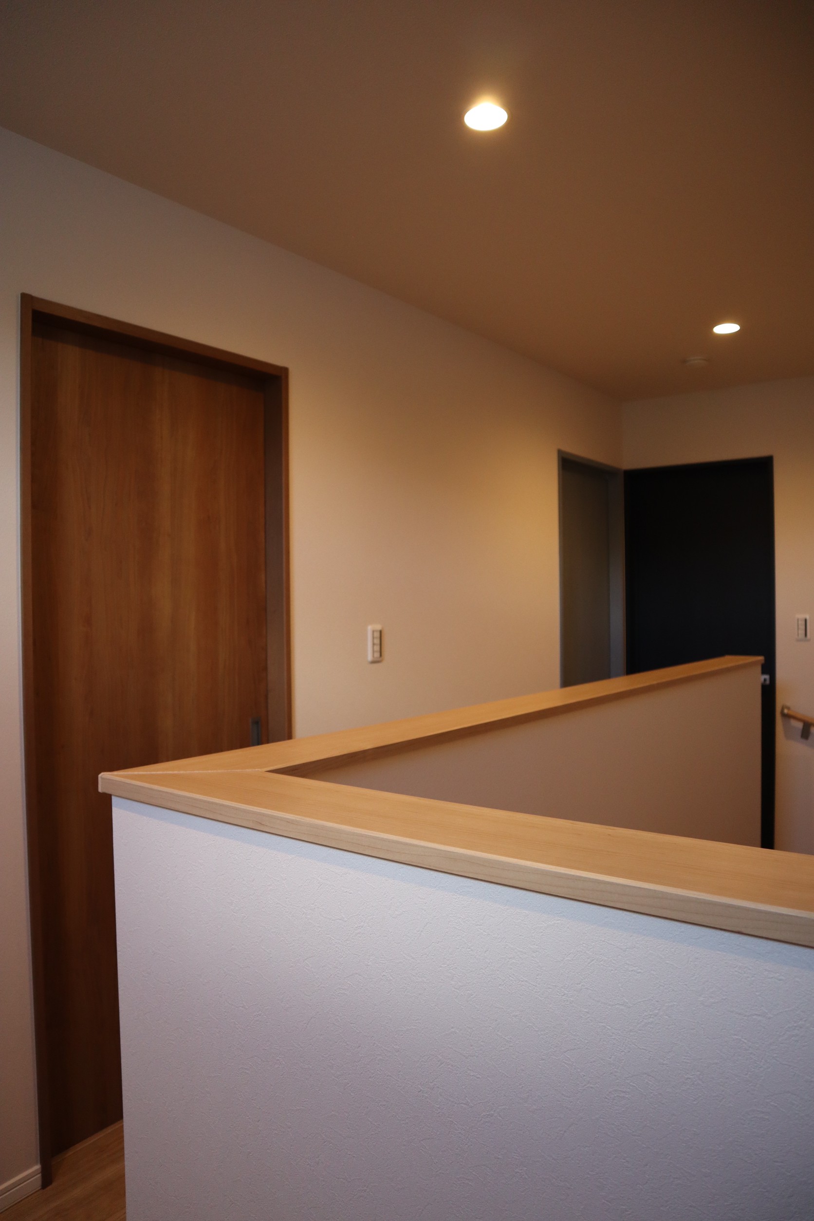 2Fの居室はそれぞれのドア色を変えておしゃれに仕上げました。