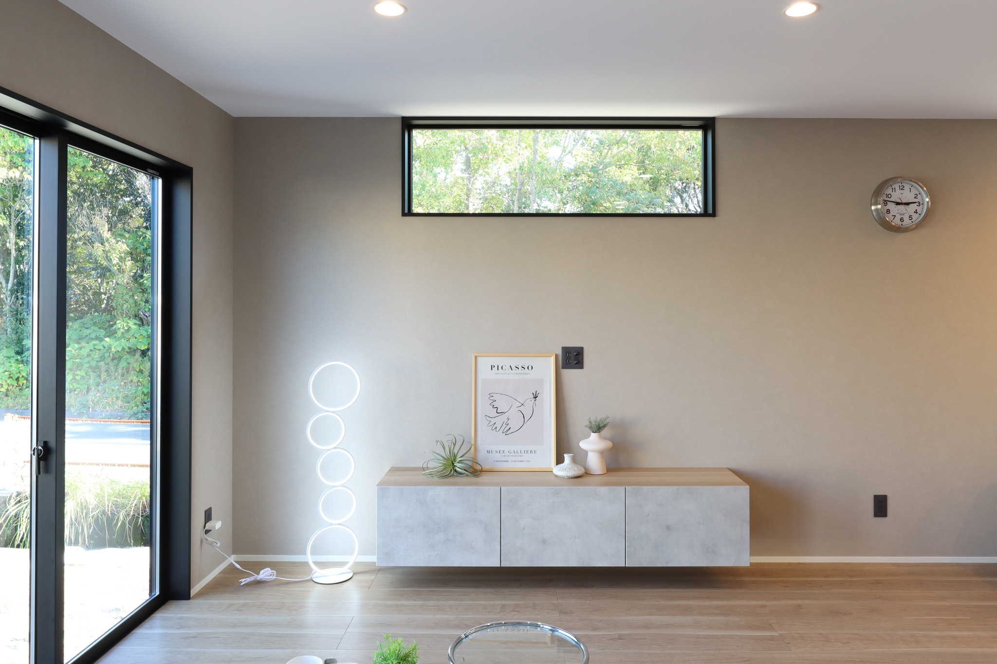 フロートのテレビボードが素敵✨天井付けの窓とのバランスも絶妙ですね。