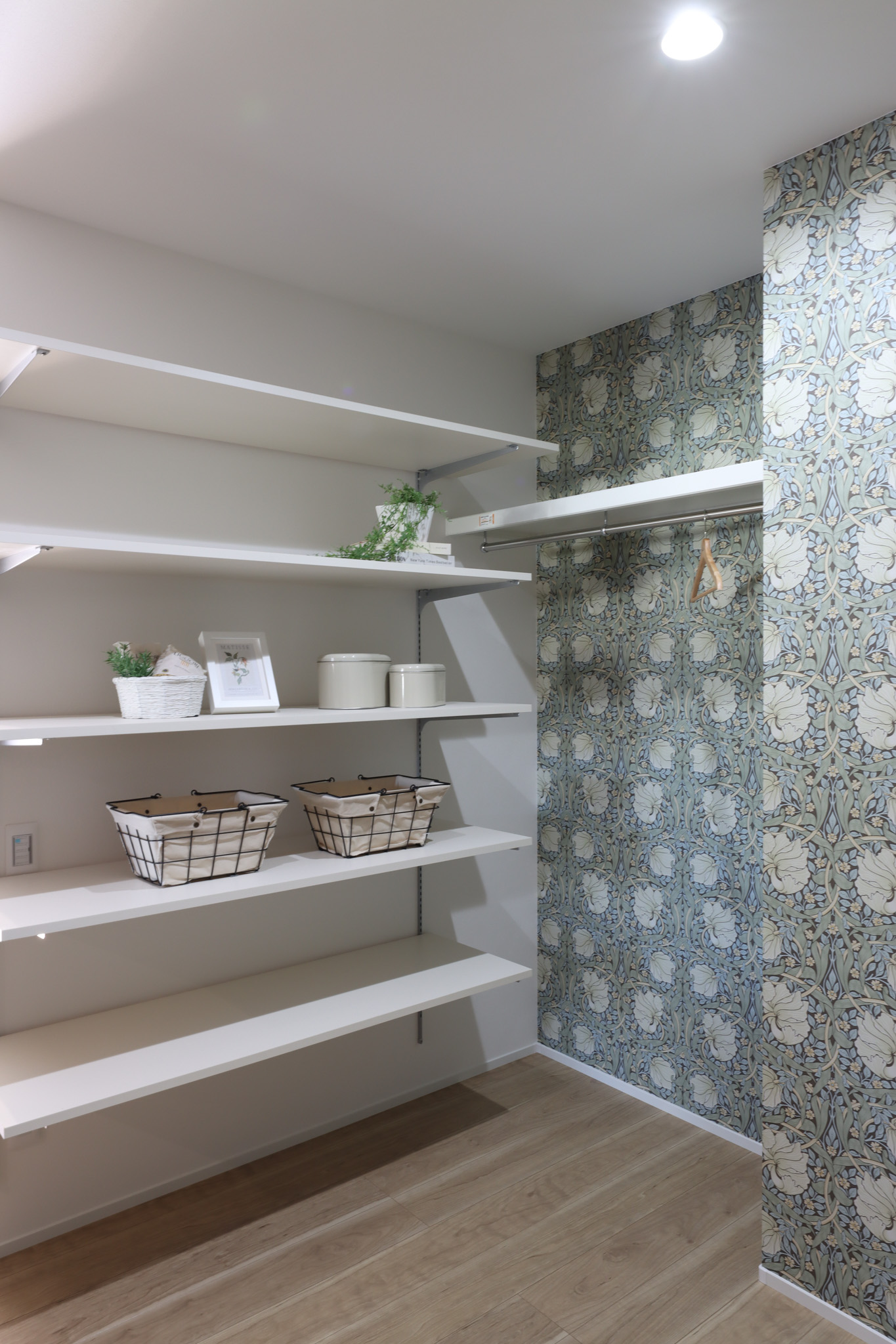 ウォークインクローゼットはウィリアムモリスのおしゃれクロス♪