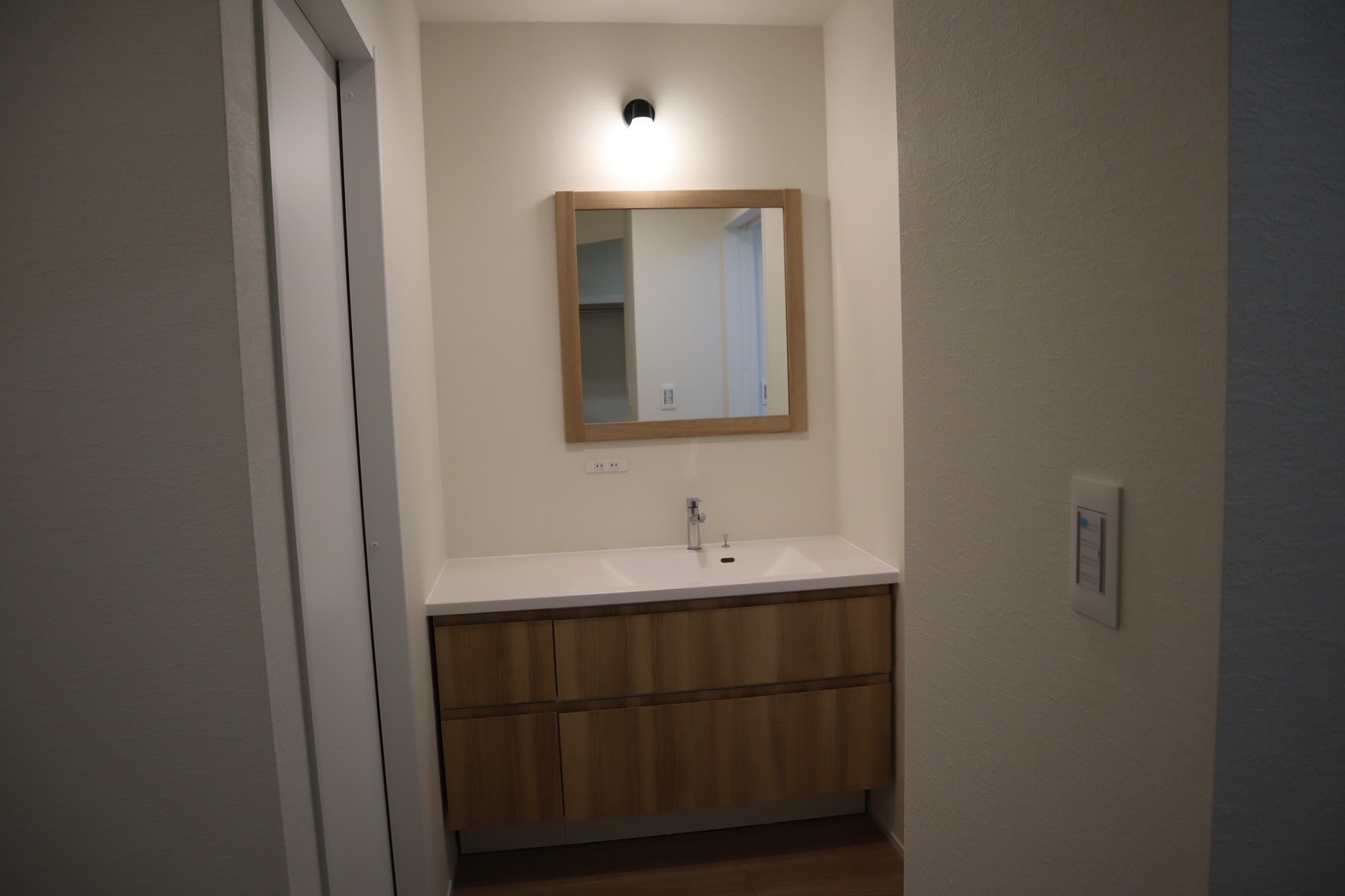 洗面台の左隣はトイレがすることで余分な手洗い場の設置を不要にしました。