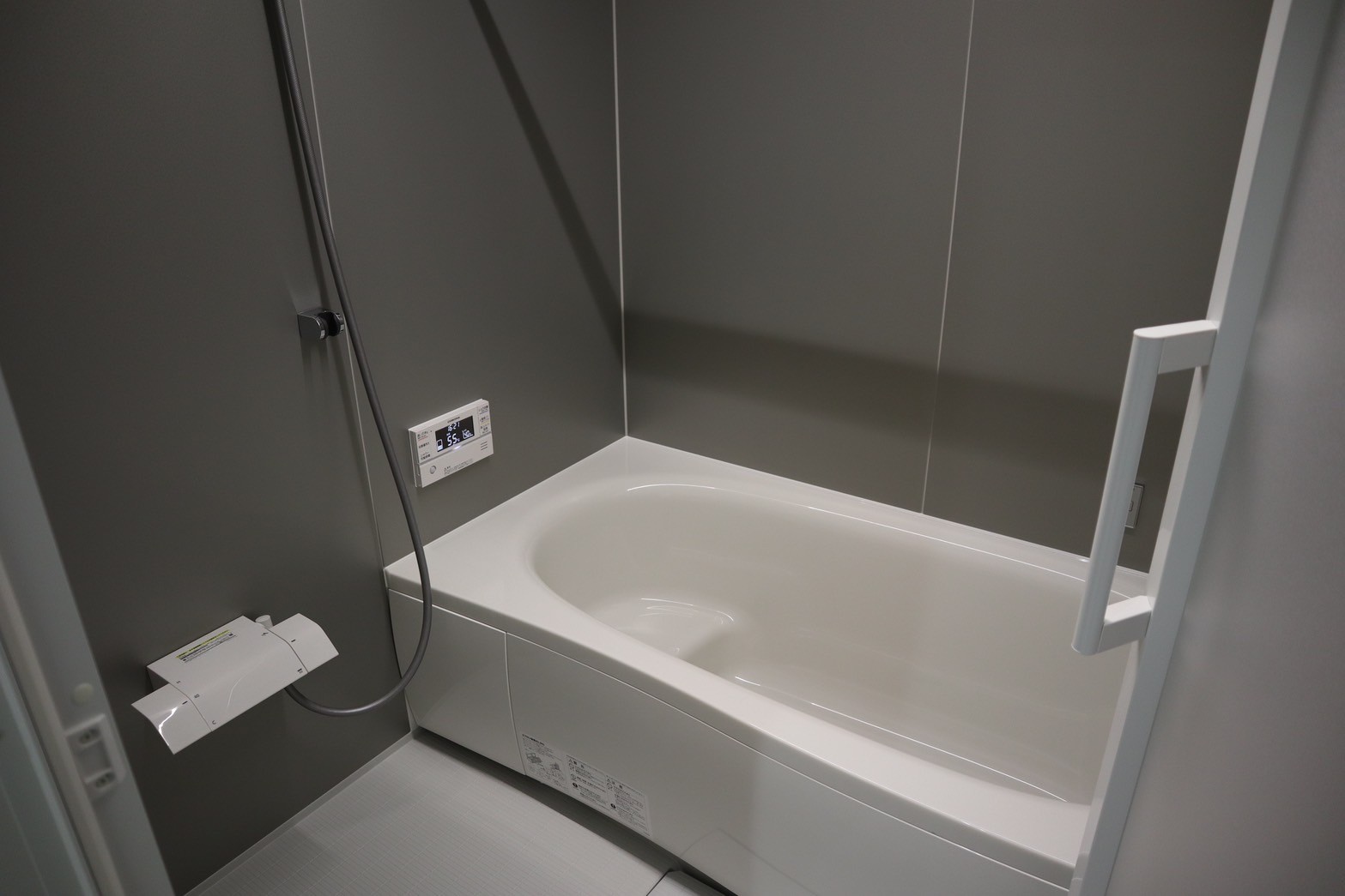 浴室はグレーと白でシンプル、なおかつオシャレに。