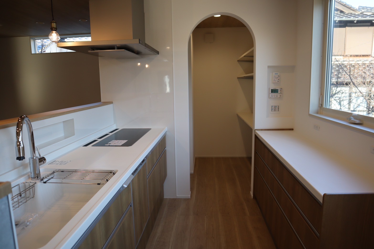 キッチン正面にはスタディーカウンターを設置。お子さんの宿題を見守りながらお料理できます!